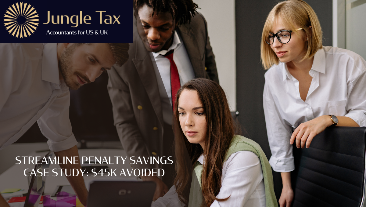 This blog is written for US citizens in the UK, business owners, directors, and globally mobile professionals. It explains how one client avoided over $45,000 in penalties through the Streamlined Filing Compliance Procedures and what you can learn from this streamlined penalty-savings case study.